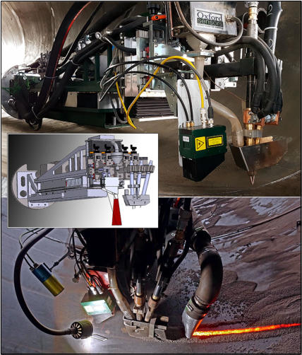 The photo shows the design superimposed over one of the heads mounted for spiral offline ID welding.